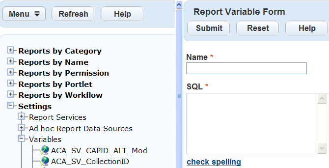 Create variables to embed in the report. A variable is an SQL statement that you add directly into Report Manager
