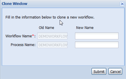 the name to dismiss the warning. (Optional) Enter the new process name. If you do not enter a new process name, the cloned workflow inherits the process of the workflow you are cloning.