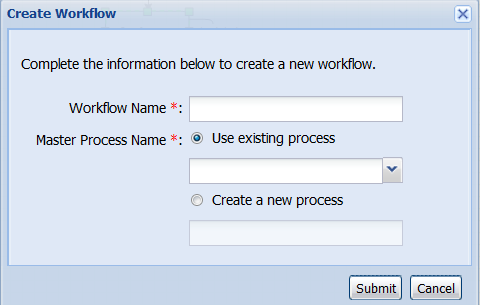 You can either create a new master process for the workflow, or specify an existing process as the master process: