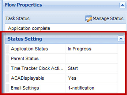 From the Status Setting panel, define the appropriate settings.