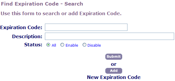 To review, update, or copy an existing expiration code, you must first search for it.