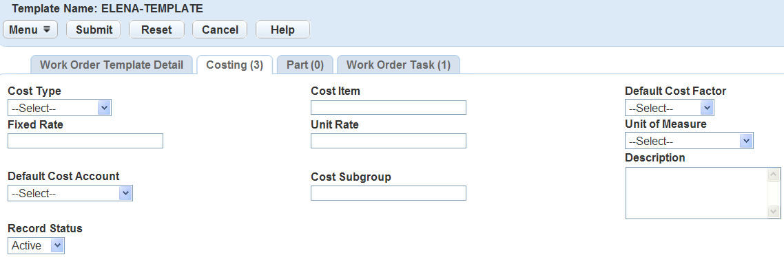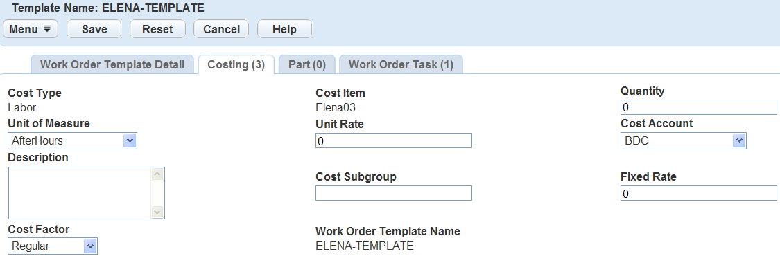 You create and maintain the costing information you associate with work orders and work order templates in the cost item definition portlet. For information on how to add cost items, see Managing Work Order Costing.