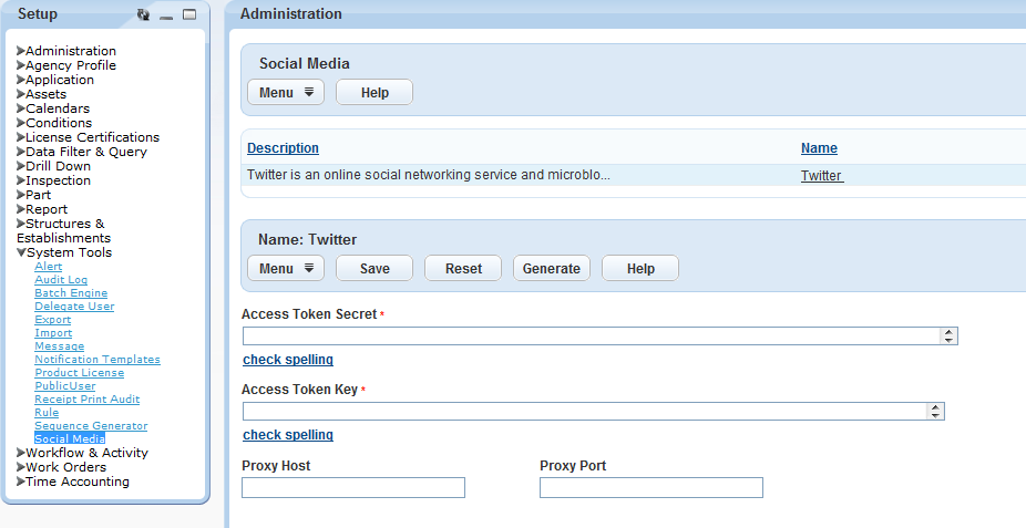 1. Go to Civic Platform Administration > System Tools > Social Media.