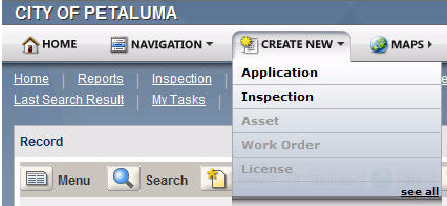 Enables the Create New button on the toolbar of the Civic Platform console. Users can click the button to select from a drop‑down menu of options for creating records or performing other operational tasks.