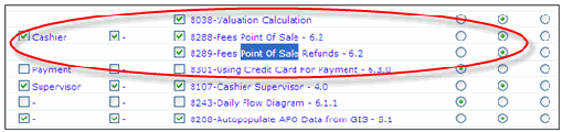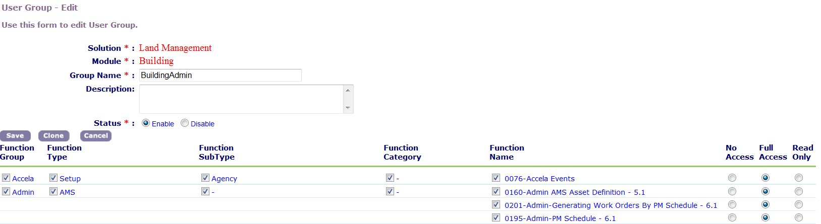 4. In the Function Name column, mark the check box beside each FID that you want to activate for this user group.