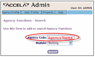 • Enter an agency code, select a module, and click Submit.
