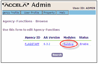 • Enter an agency code and click Submit to display a list of all modules within the specified agency.