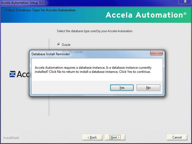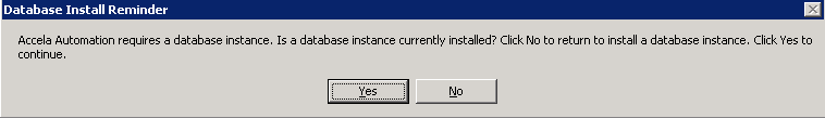 If you selected Web Server or Application Server components without selecting the Database Install/Upgrade component (see Managing a Civic Platform Configuration), the Database Install Reminder appears in a message box.