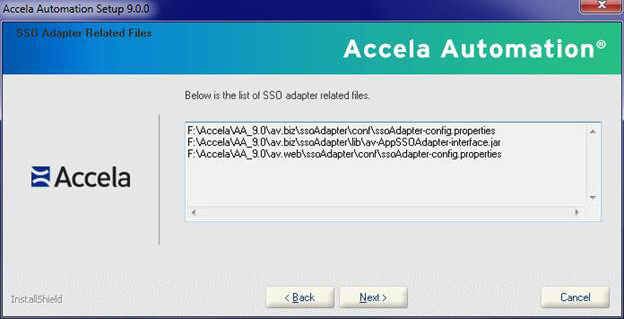 Note:If the installer detects no existing SSO adapter files to copy, the installer skips this step, and copies default SSO adapter files to the application server.