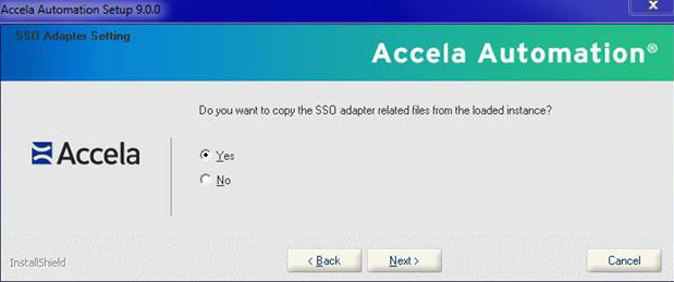 - Click Yes to copy the SSO adapter files from the existing instance.