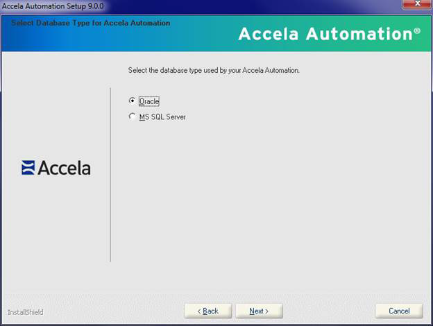 - Select Oracle or MS SQL Server.
