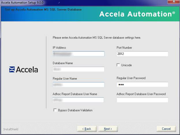 Note:If you mark Bypass Database Validation, the installation program does not validate the database settings before continuing to the next step. Unicode is for I18N multilingual support.