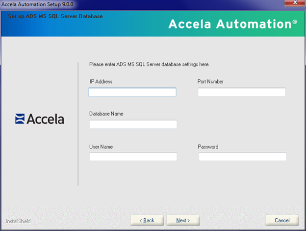 Note:If using MS SQL 2005 you can enter IP\instance name for the IP address field.