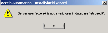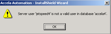 This error message displays if you selected Database Install/Upgrade and then entered an invalid regular, ad hoc, or Jetspeed login user name or password.