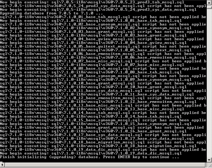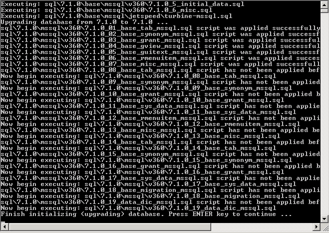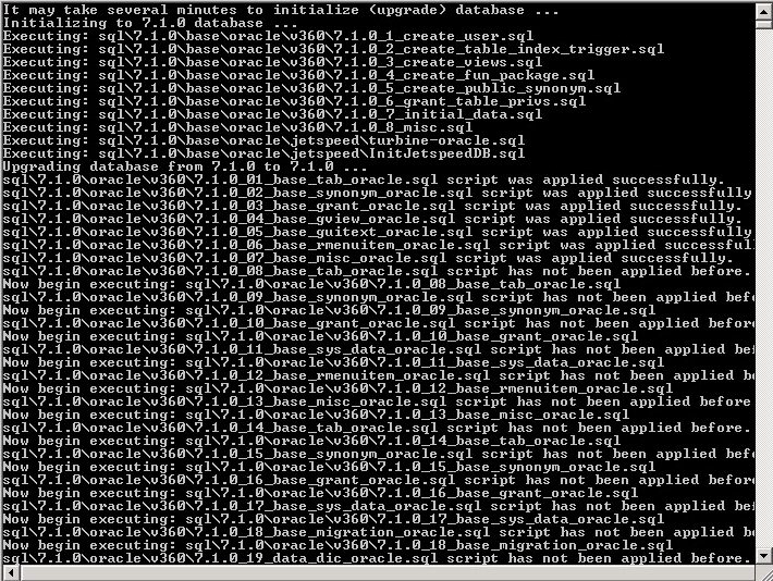 For each database upgrade script, a similar screen like the one below displays.