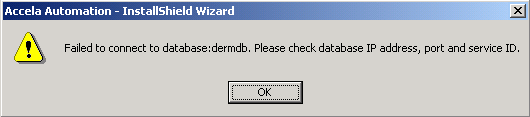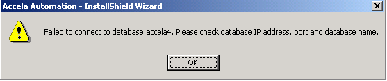 The installer displays the following series of message boxes with the verification results of the database settings.