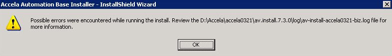 - Review the log file that the screen indicates.