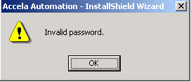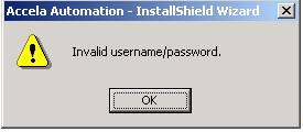This error message displays if you entered an invalid admin user name or password.