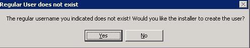 Click No if you did not install a database yet.