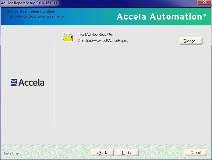1. Locate and double-click the ad hoc report installer to launch the installation wizard. The installer file is named Setup_Adhoc_Report_19.1.0_161211.exe.