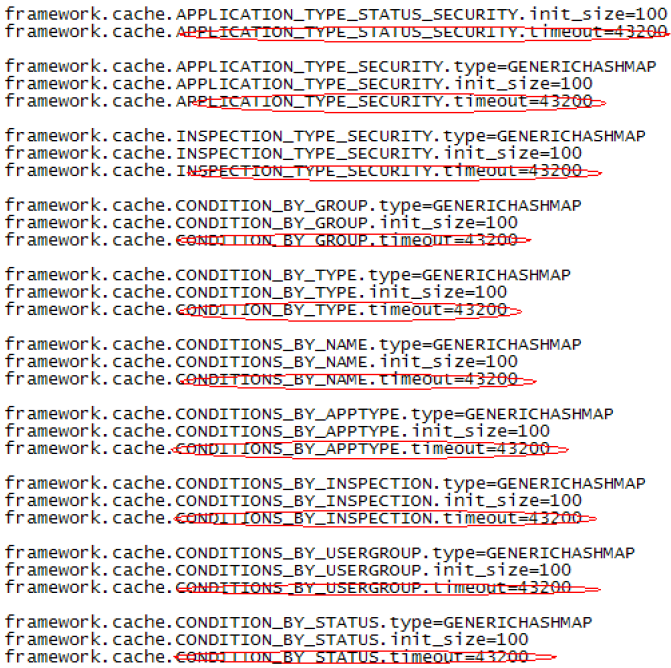 The cache time-out setting specifies the maximum amount of time (in seconds) that your agency’s data remains cached before you purge it. By default, the time-out setting is 43200 seconds (12 hours). You can adjust the value in the configuration files on the Civic Platform server.