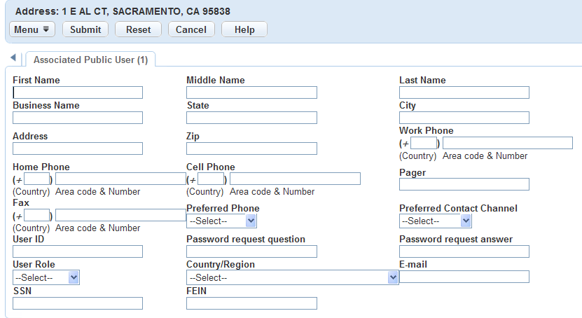 Once you have created addresses, you can use the Associated Public User tab to associate one or more public users to an address, or to disassociate one or more public users from an address.