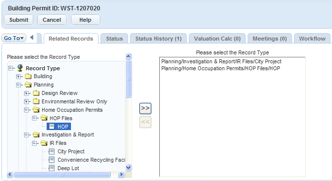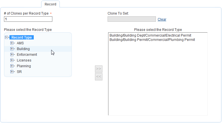 If you add more than one record type to the Selected Record Types list, Civic Platform creates one record for each type selected.
