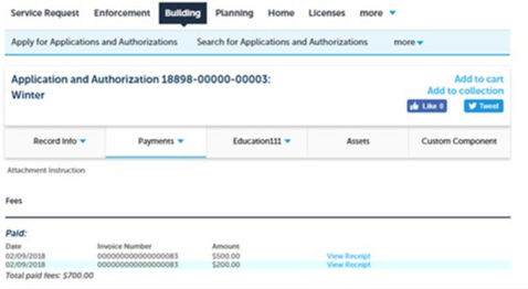 8. Using Citizen Access, view the Fees. Both Citizen Access and Back Office should show same paid balance.