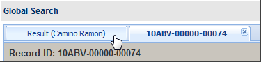 You can click any search result hyperlink to access record (object) details. Your search results remain available and you can return to that list at any time by clicking the Result (main) tab as shown.