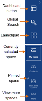 - Main Menu bar - The spaces layout enables you to move from page to page quickly. Just click the space you want to get to it. You can have up to 20 spaces open at one time.