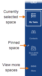 - Pin - Keep spaces open every time you log into Civic Platform. (Unpinned spaces will close any time you log out.)